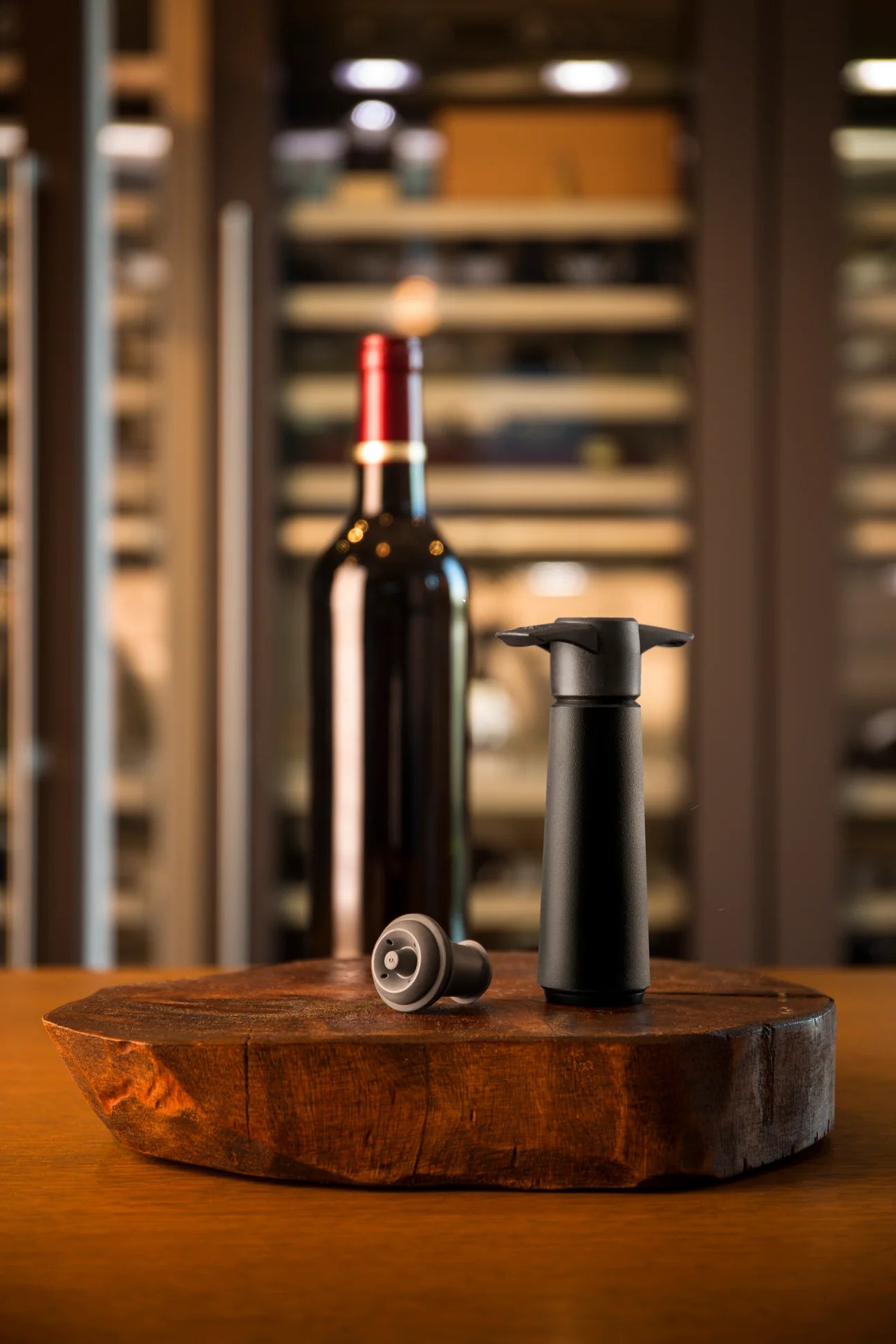 De Vacuüm Wine Saver bestaat uit een vacuümpompje met bijbehorende afsluitdoppen, waarmee aangebroken flessen wijn langer bewaard kunnen blijven. Plaats de afsluitdop in de flessenhals en verwijder de lucht met behulp van het pompje. Een "click" geluid geeft aan dat u voldoende heeft gepompt en het optimale vacuüm is bereikt. Het oxidatieproces van de wijn wordt vertraagd, waardoor u op een later tijdstip opnieuw van uw wijn kunt genieten. De vraag "hoe vaak moet ik pompen?" behoort nu tot het verleden. De unieke, gepatenteerde vacuüm indicator laat door middel van een “click” geluid horen dat het optimale vacuüm is bereikt.